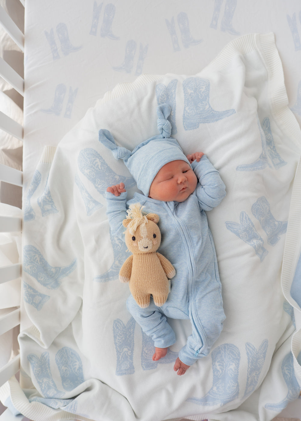 Knit Blanket | Sky Blue Cowboy Boots