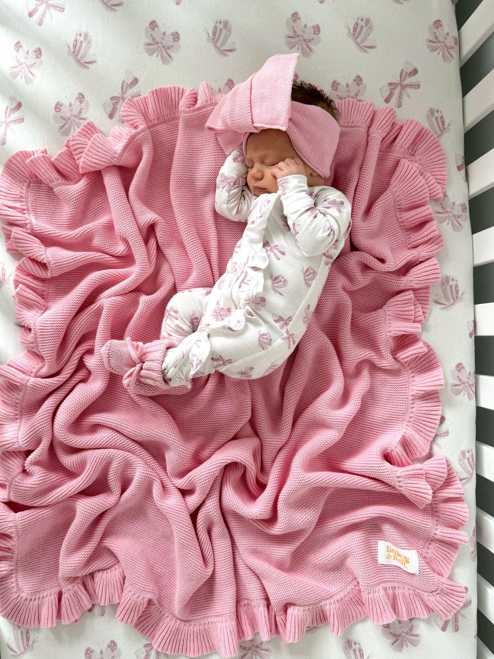 Our new Bassinet and Cot sheets are designed with delicate, watercolour pink butterflies on a soft and snuggly ivory cotton jersey fabric. They make the perfect addition to any nursery.