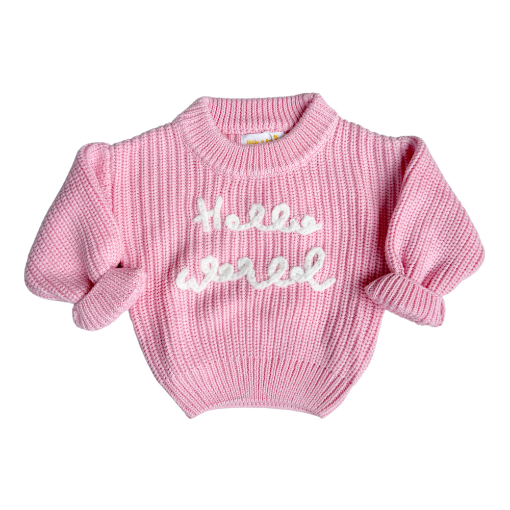'Hello World' Chunky Knit Jumper | Baby Pink