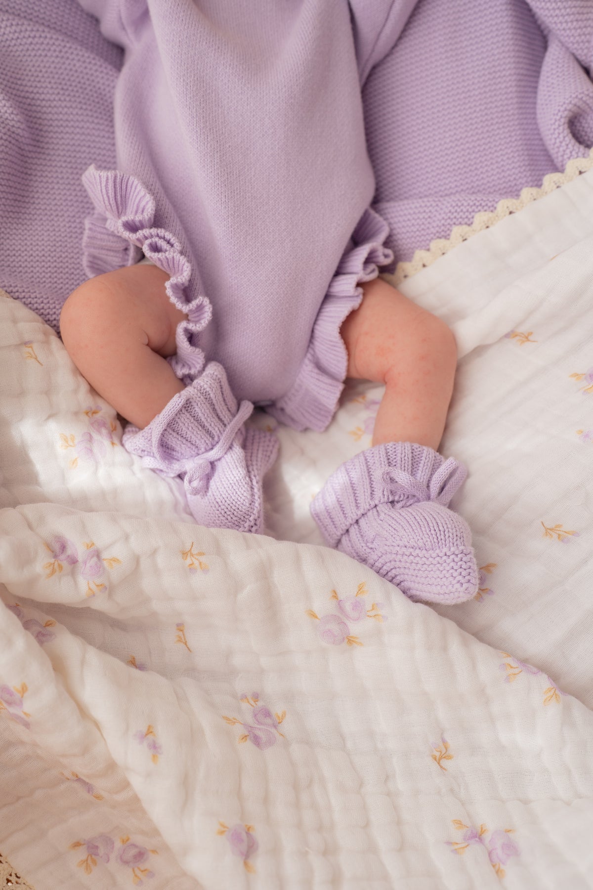Keep those tootsies warm with our new knitted booties. Made from 100% cotton, they are incredibly warm and comfortable for your littlest loves. We also have our new knitted topknots to match.