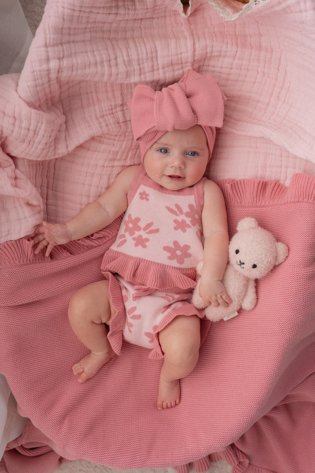 Knitted Oversized Topknot | Daisy Floral Strawberry