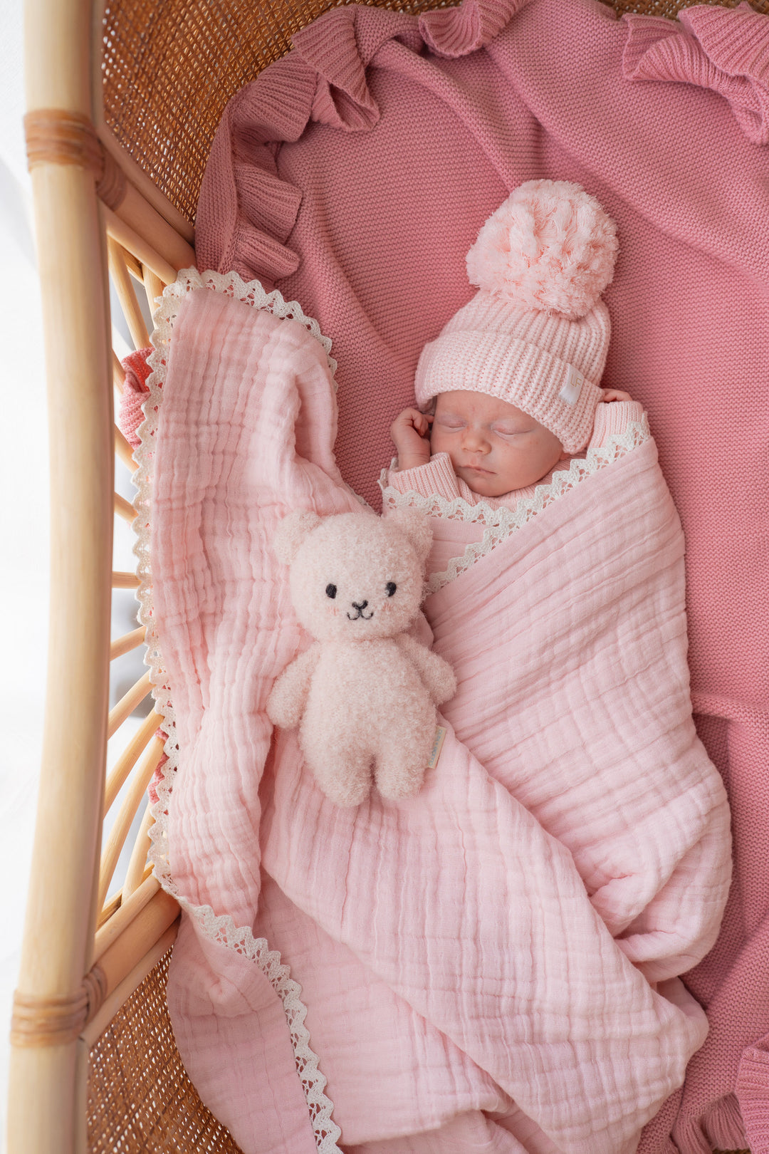 Knitted Pom Beanie | Daisy Floral Strawberry