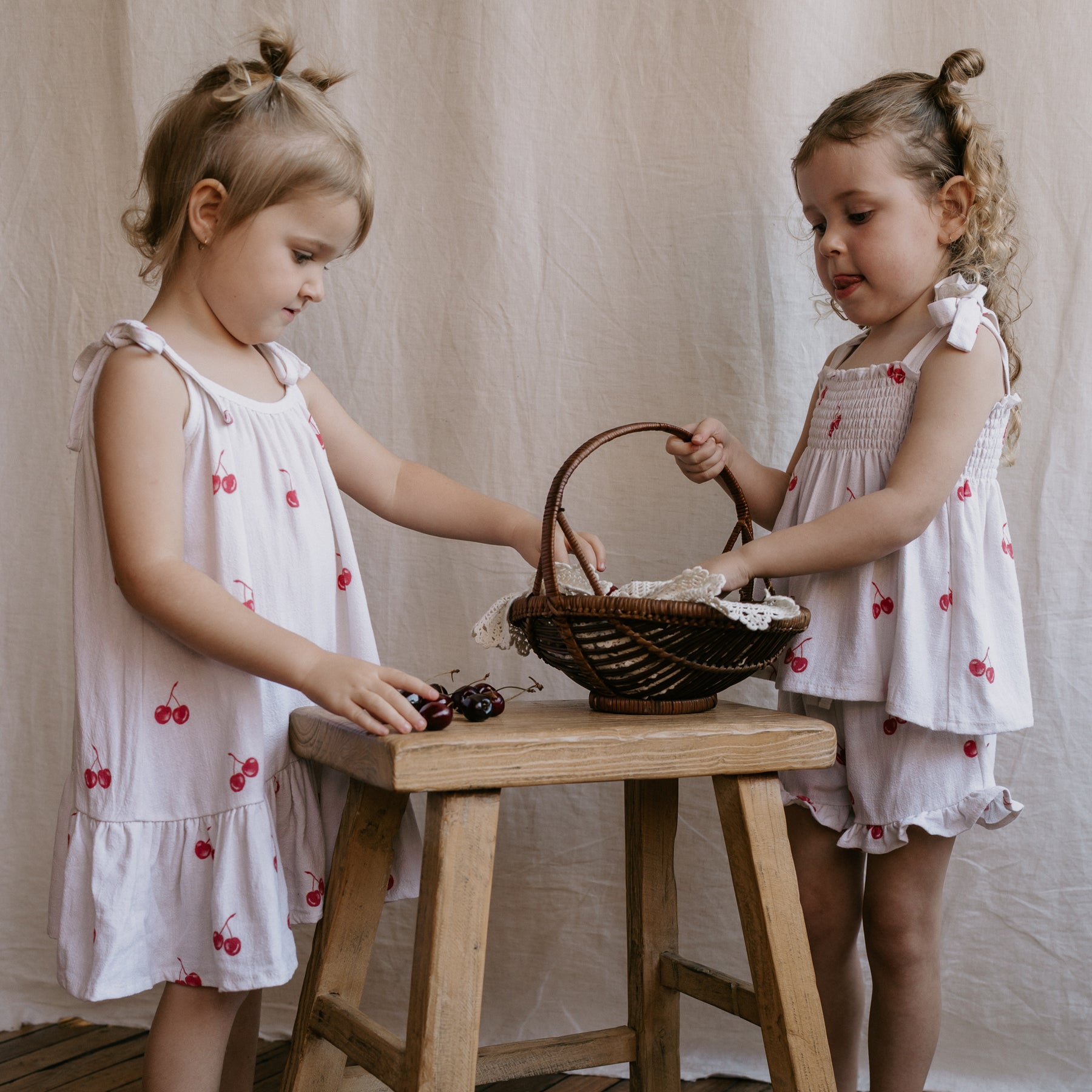 Crafted from our soft and breathable linen blend, it features our sweet Red Cherries print The adjustable shoulder ties make for an easy, flexible fit as your child grows.
