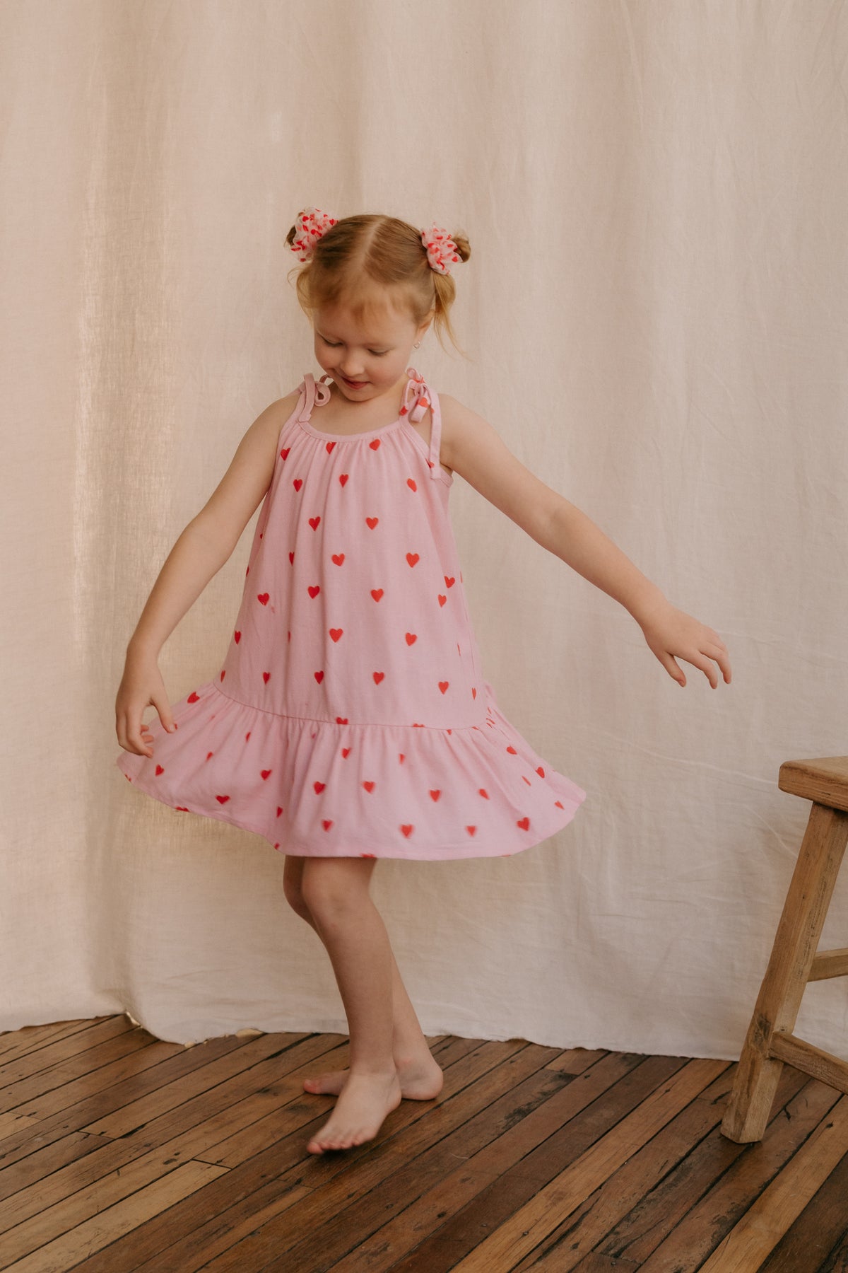 Crafted from our soft and breathable linen blend, it features our lovely Red Hearts print The adjustable shoulder ties make for an easy, flexible fit as your child grows.