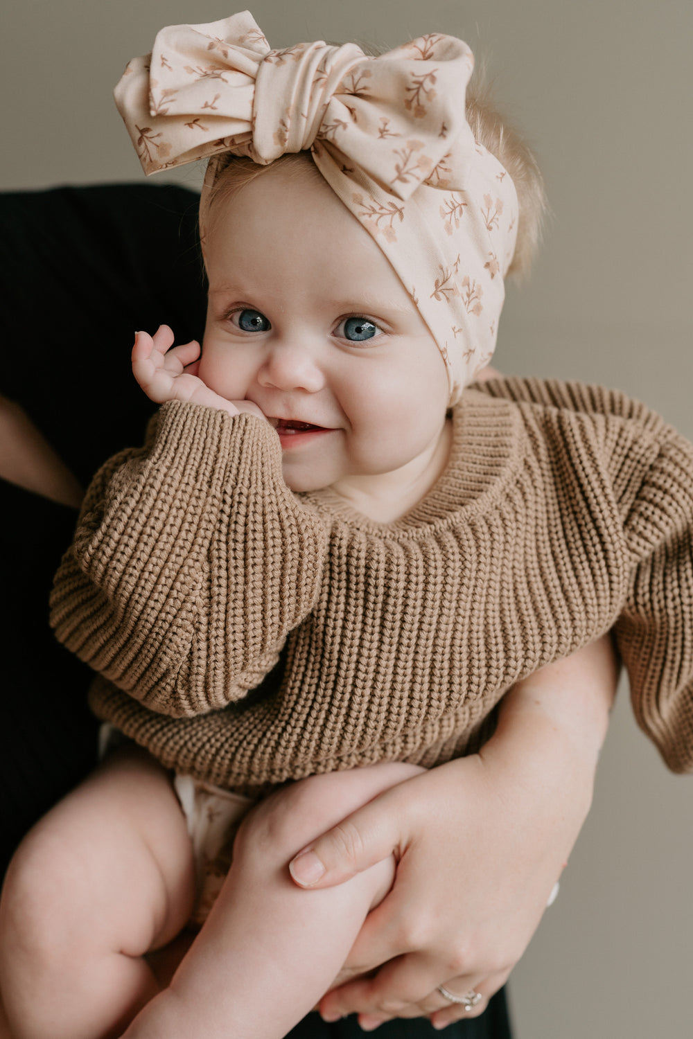 Ravyn Splurged on this outfit for my little one to go home in with the booties. Very cute. Top knot is very oversized - something to keep in mind if you are planning to use it right when they are born. Material held up very well and the 0-3 actually fit my girl well until she was 5 months! I enjoyed that her feet could be exposed because she loved playing with her feet.